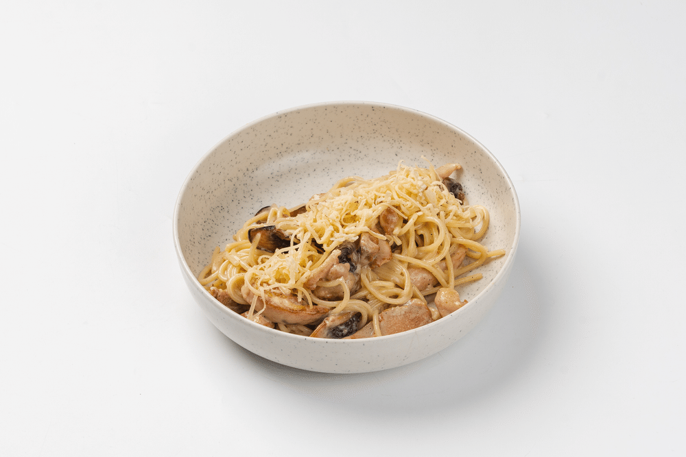 Спагетти с курицей и грибами